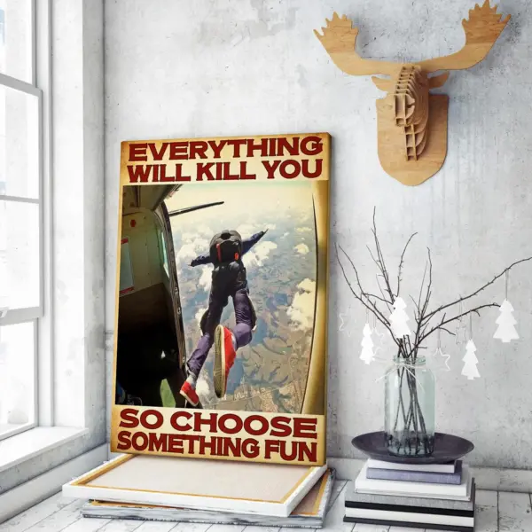 Skydivers Everything Will Kill You So Choose Something Fun Poster Canvas Adventures Is Everywhere You Just Have To Dive To It