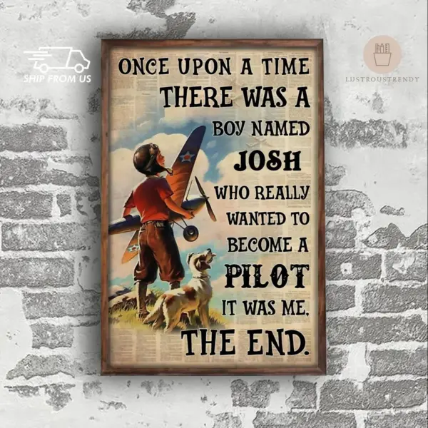 Skydiving Pilot Flyer And Dog Poster There Was A Boy Named Josh Who Really Wanted To Become A Pilot Poster Home Living Decor Poster