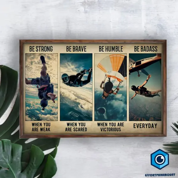 Skydiving Poster Skydivers Be Strong Be Badass Everyday Wall Art Home Decor Poster Print
