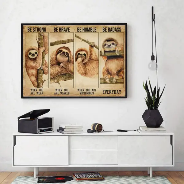 Sloth Be Strong Be Brave Be Humble Be Badass Poster Animal Lover Poster Sloth Horizontal Poster No Framed