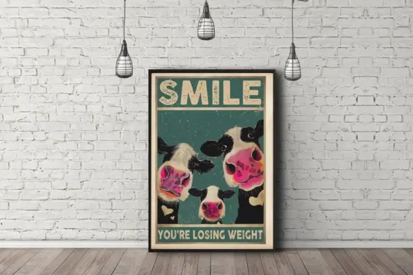 Smile You Re Losing Weight Poster Cow Lover Poster Funny Cow Poster Cow Quote Poster Animal Poster Smile Cow Poster Woodland Poster