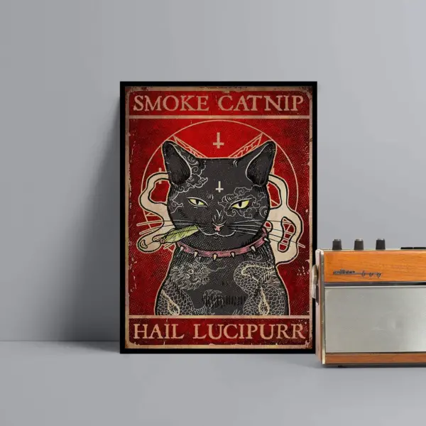 Smoke Catnip Hail Lucipurr Poster Gift For Cat Lover Funny Cat Art Print Black Cat Canvas Print Vintage Poster Funny Black Cats Poster