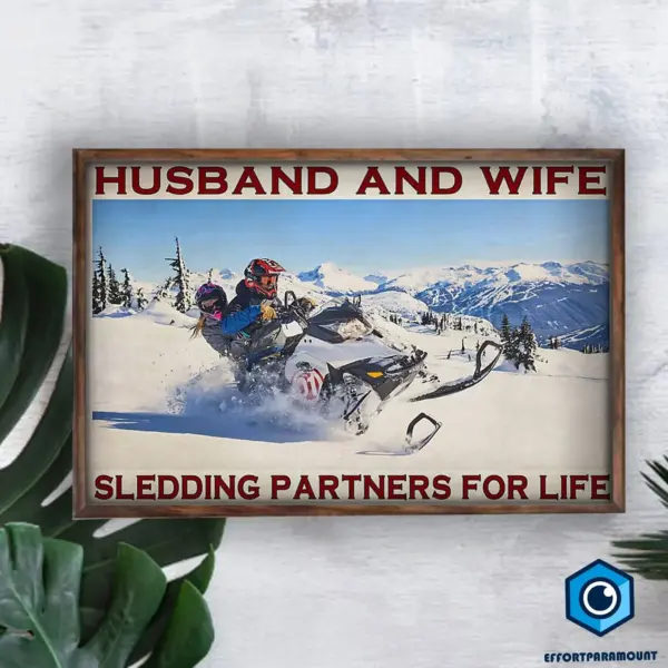 Unique Valentine's gift for snowmobile enthusiasts: Romantic wall art featuring a loving couple, perfect for home decor and celebrating winter sports passion.