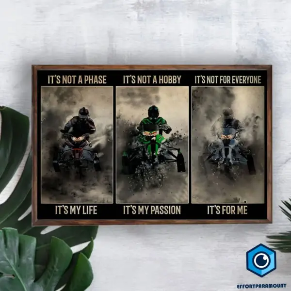 Unique snowmobile racing wall art featuring motivational "It's My Life" theme - perfect for motorsport enthusiasts and snocross fans seeking inspirational home decor.