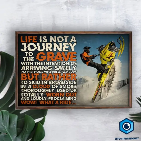 Capture the high-energy excitement of snowmobile racing with this dynamic Snocross poster, perfect for motorsports enthusiasts and winter sports fans.