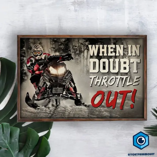 Unique snowmobile motorsport wall art featuring inspirational throttle quote. Perfect decor for snow racing enthusiasts and powersports fans. High-quality print for home or office.