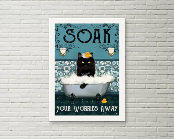 Soak Your Worries Away Poster Funny Black Cat Poster Bathroom Decor Cat Lover Gift Cat Decor Home Decor Signs For Home Best Gift