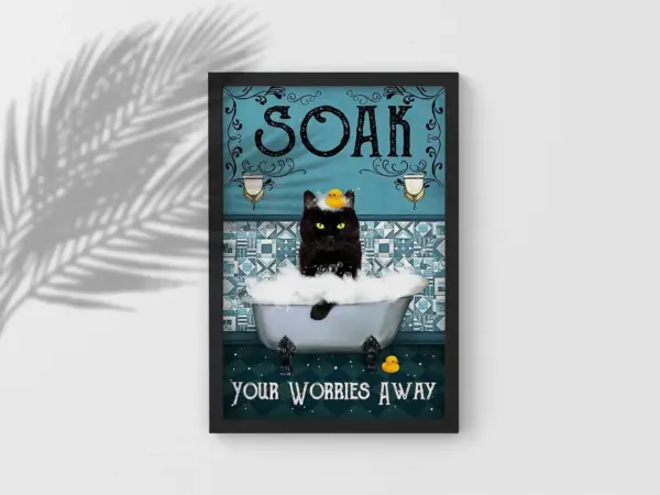 Soak Your Worries Away Print Black Cat Poster Funny Bathroom Print Bathroom Wall Art Funny Kitty Print Farmhouse Sign Signs For Home