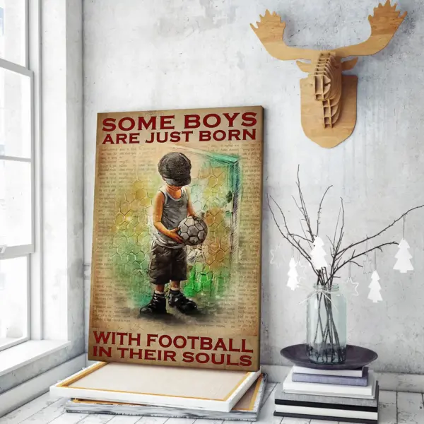 Some Boys Are Just Born With Football In Their Souls Poster Canvas Vintage Wall Art Football Lover Gift Soccer Player Poster