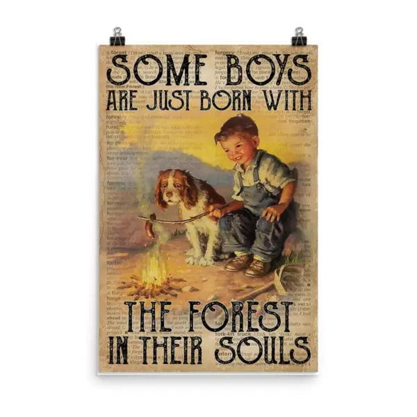 Some Boys With The Forest And Dog Camping Poster Unframed