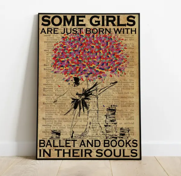 Some Girls Are Just Born With Ballet And Books In Their Souls Poster Ballet Poster Books Poster Ballet Lovers Gift Vintage Poster Jh 2271 Framed Matte Canvas