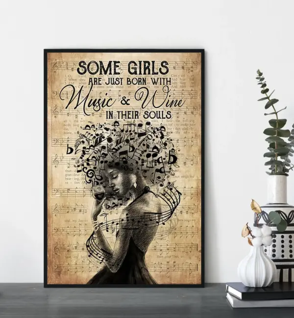 Some Girls Are Just Born With Music And Wine In Their Souls Poster Black Poster Black Girl Poster Africa America Wine Poster 1507