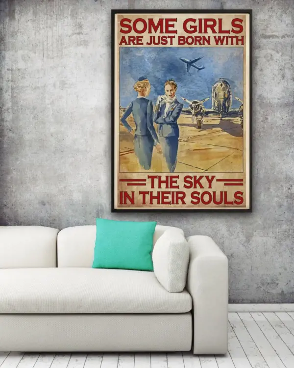 Some Girls Are Just Born With The Sky In Their Sould Poster Flight Attendant Girls Poster Sky Lover Poster Sky Girl Poster Plane Girl