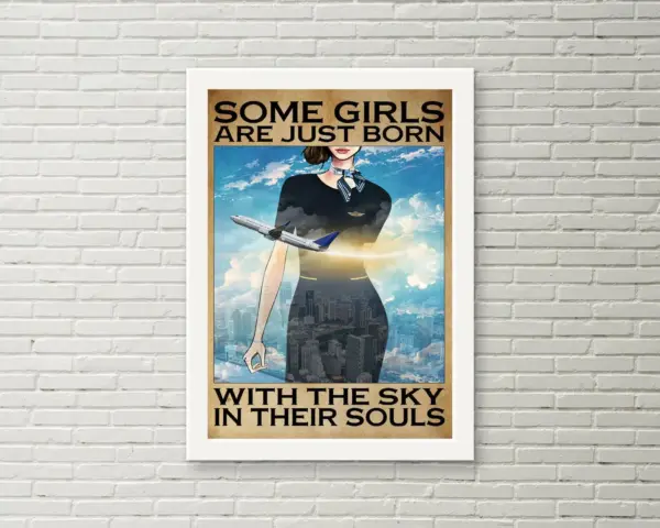 Some Girls Are Just Born With The Sky In Their Souls Poster Flight Attendant Poster Stewardess Poster Airline Attendant Print Home Decor