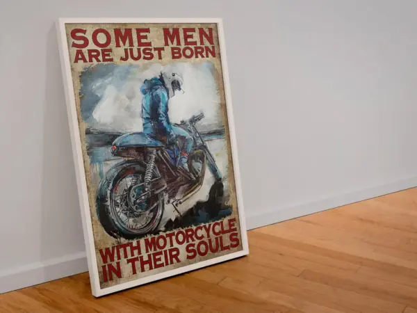 Some Men Are Just Born With Motorcycle In Their Souls Bike Racing Motivational Poster Biker Art Print Riding Lover Canvas For Home Decor