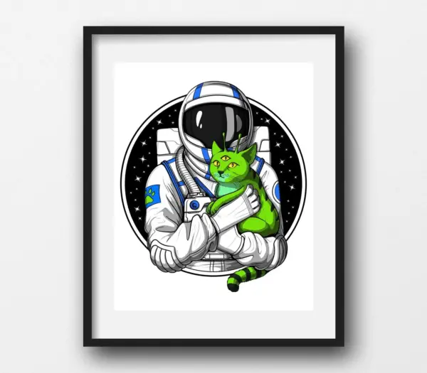 Space Astronaut Alien Cat Canvas Poster Psychedelic Cat Wall Decor Science Fiction Art Print Funny Aliens Room Decor Cat Lover Gifts