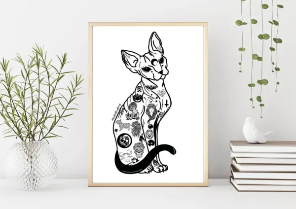 Sphynx Cat Art Print Hairless Cat Foil Print