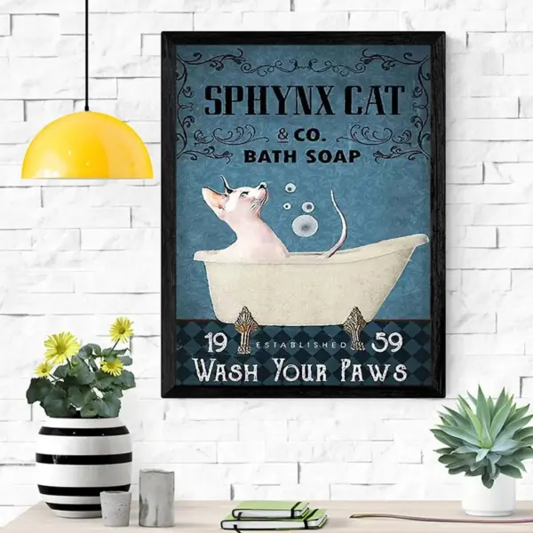 Sphynx Cat Co Bath Soap Wash Your Paws Poster Black Cat Poster Cat Vintage Poster Cat Lover Gift