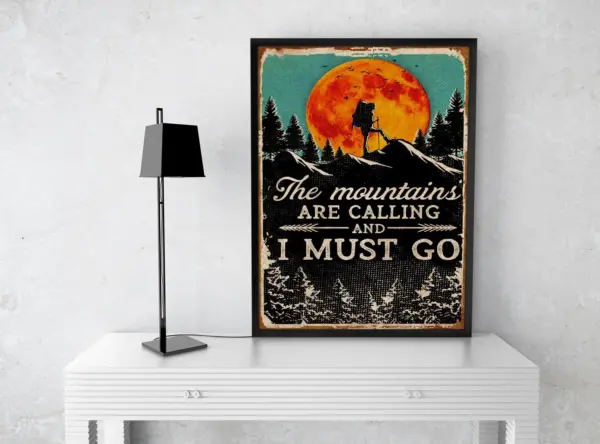 Sports Poster The Mountain Are Calling And I Must Go Hiking Poster Travel Poster Adventure Vintage Poster Hiking Lover Gift Wall Art