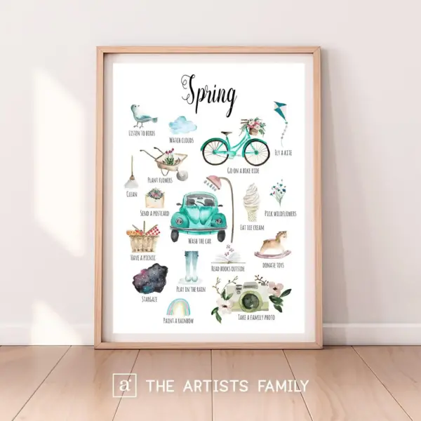 Spring Downloadable Prints Water Color Montessori Educational Poster Kids Children Room Learning Painting Wall Art Nursery Fun To Do List
