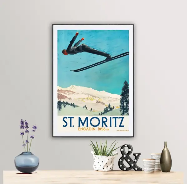 St Moritz Engadin Switzerland Vintage Ski Poster Poster Paper Sticker Or Canvas Print Gift Idea