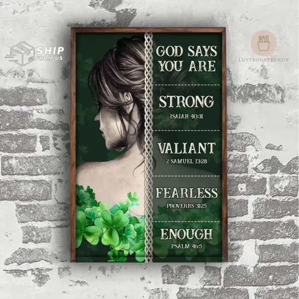 St Patrick S Day Gifts Irish Girl And Shamrock Poster God Says You Are Strong Poster Home Living Decor Poster