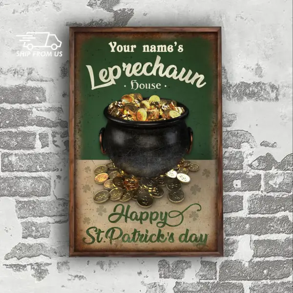St Patrick S Day Gifts Personalized Custom Name Poster Leprechaun House Happy St Patrick S Day Poster Home Living Decor Poster