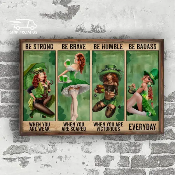 St Patrick S Day Irish Day Gifts Girl Be Badass Horizontal Poster