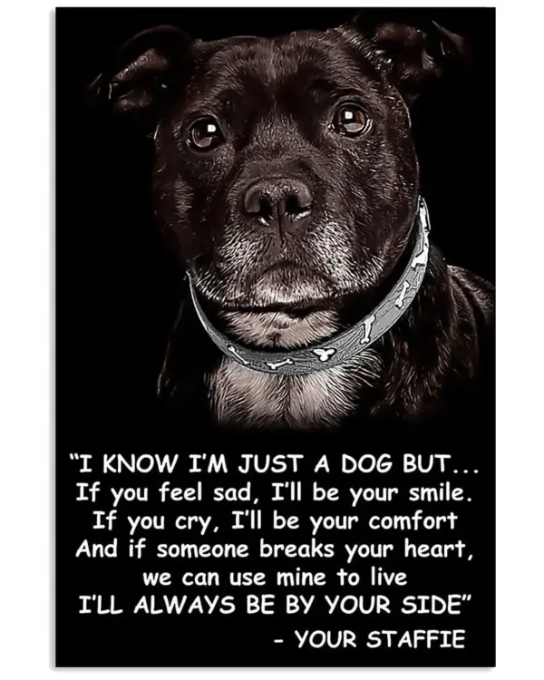 Heartwarming Staffordshire Bull Terrier memorial poster celebrating the unbreakable bond between dog and owner. Perfect tribute for dog lovers and pet memorial decor.
