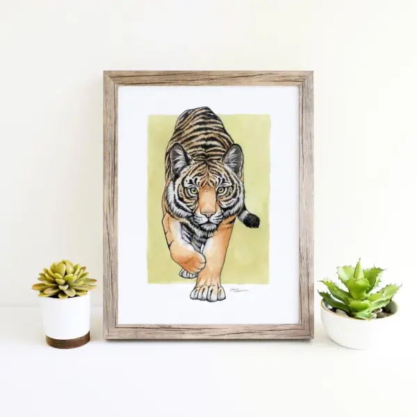 Stalking Tiger Art Print In Watercolor And Pen