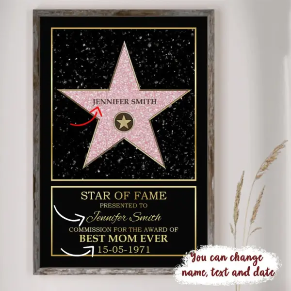 Star Of Fame Award Poster Personalized Star Certificate Print Customized Name Poster Wall Hanging Galaxy Poster Birthday Gift Best Gift