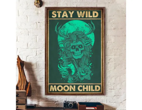 Stay Wild Moon Child Hippie Poster Wall Decor Skull Art Print Skull Wall Decor Skull Poster Moon Poster Hippie Peace Poster