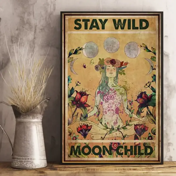 Stay Wild Moon Child Meditation Girl Boho Trippie Vintage Poster Yoga Hippie Girl Poster No Framed