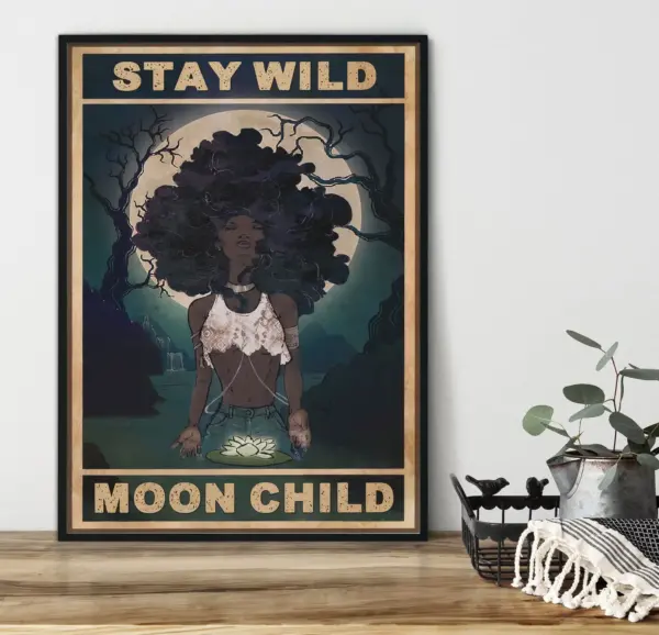 Stay Wild Moon Child Poster Afro Queen Art Print Black Girl Poster African American Canvas Print Black Woman Wall Art Vintage Poster