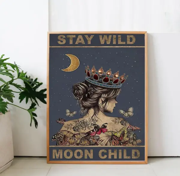 Stay Wild Moon Child Poster Beauty Girl In The Moon Poster Best Gifts For Moon Lover