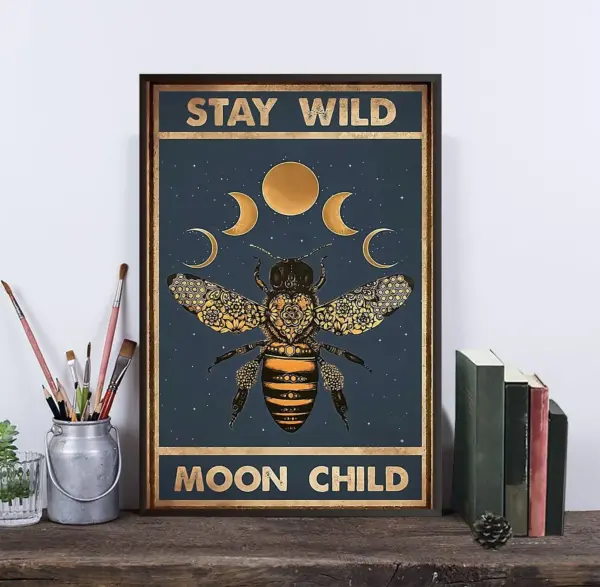 Stay Wild Moon Child Poster Bee And Flowers Poster Bee And Moon Wall Art Bee Lovers Gift Love Moon Print Flower Lovers Gift 2107