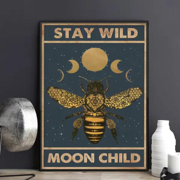 Stay Wild Moon Child Poster Bee Poster Hippie Soul Art Print Bohemian Poster Love Hippie Soul Art Print Vintage Poster Moon Poster