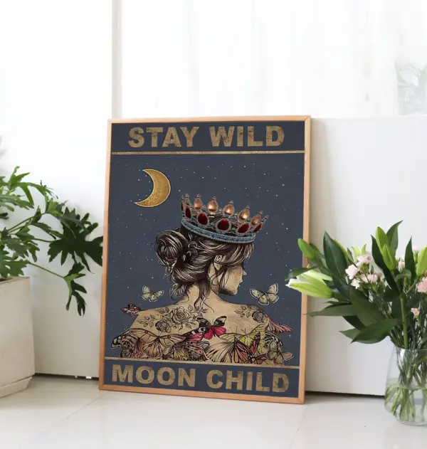 Stay Wild Moon Child Poster Butterfly Wall Art Butterfly Girl Wall Art Butterfly Girl Poster Butterfly Girl Vintage Lover