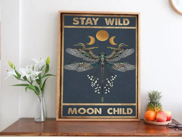 Stay Wild Moon Child Poster Dragonfly Wall Art Hippie Wall Decor Hippie Wall Art Dragonfly Poster Moon Phases Wall Art
