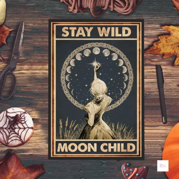 Moon Child Poster: Hippie Girl Vintage Art Print
