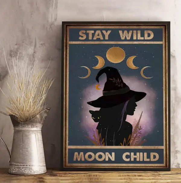 Stay Wild Moon Child Poster Hippie Witch And Cat Poster Hippie Witch Poster Hippie Soul Canvas Print Hippie Girl Art Print Hippie Gift