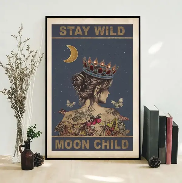Stay Wild Moon Child Poster Queen Butterfly Poster Moonlight Girl Poster Butterfly Girl Poster Crown Girl Poster Moon Queen Poster