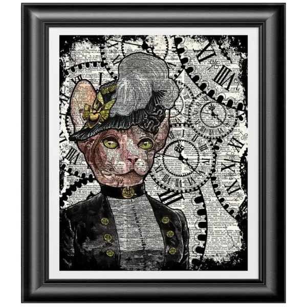 Steampunk Victorian Art Print Sphynx Cat Animal In Clothes Print Cat Print Upcycled Dictionary Page Book Art Print