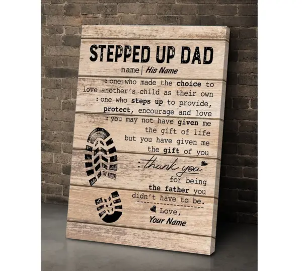 Stepped Up Dad Canvas Thank You For Being The Father You Didn T Have To Be Print Fathers Day Gift For Stepdad From Stepdaughter Stepson