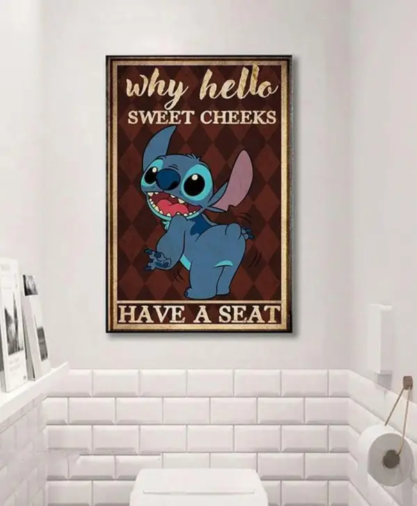 Funny Bathroom Wall Art: Stitch Sweet Cheeks Toilet Humor Poster
