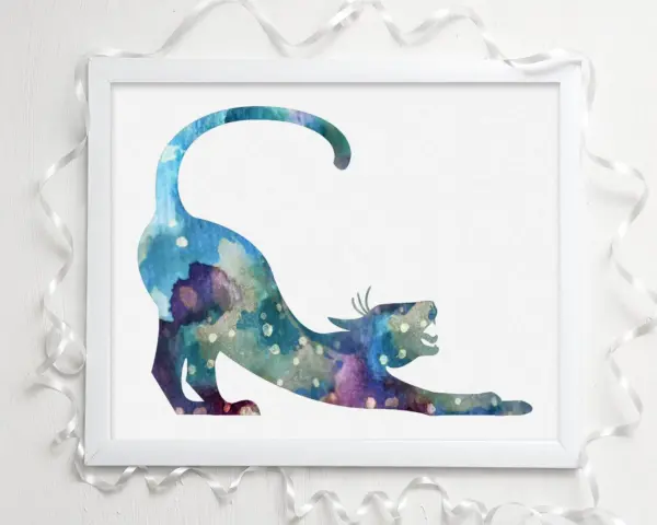 Stretching Cat Print Watercolor Art Printable Cat Poster Cat Painting Cat Wall Art Nursery Decor Blue