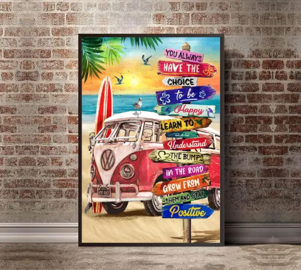 Summer Beach Camper Road Sign You Always Have The Choice To Be Happy Poster Hippie Poster Caping Poster Hippie Camper Hawaii 2107