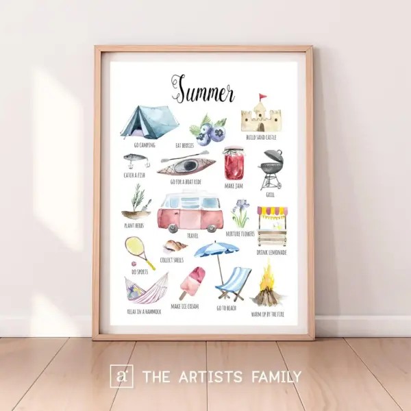 Summer Downloadable Prints Watercolor Montessori Educational Poster Kids Children Room Learning Painting Wall Art Nursery Fun To Do List