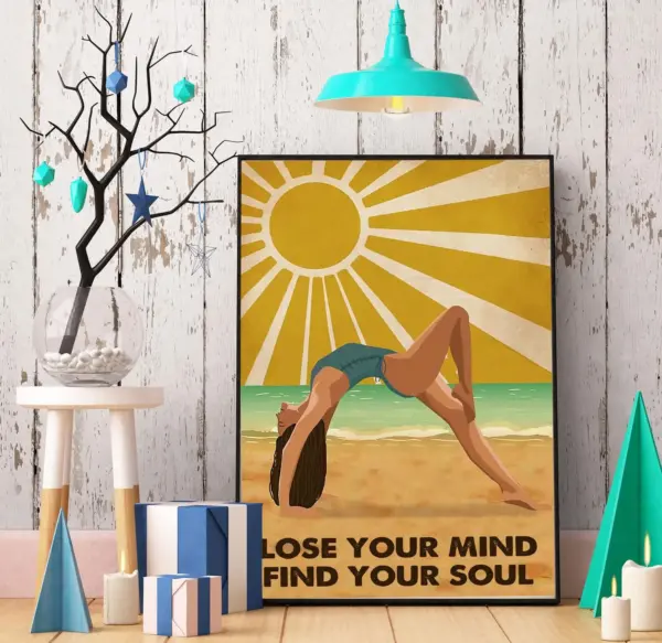Sun Beach Yoga Girl Lose Your Mind Vertical Poster Yoga Lovers Poster Vintage Hippie Poster Yoga Lovers Print Art