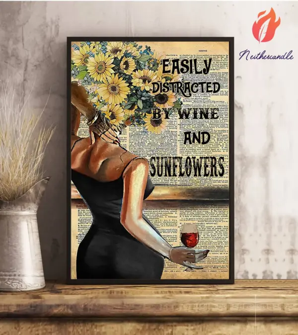 Sunflower Poster Sunflower Easily Distracted By Wine And Sunflowers Sunflower Lovers Wall Art Home Decor Poster Print